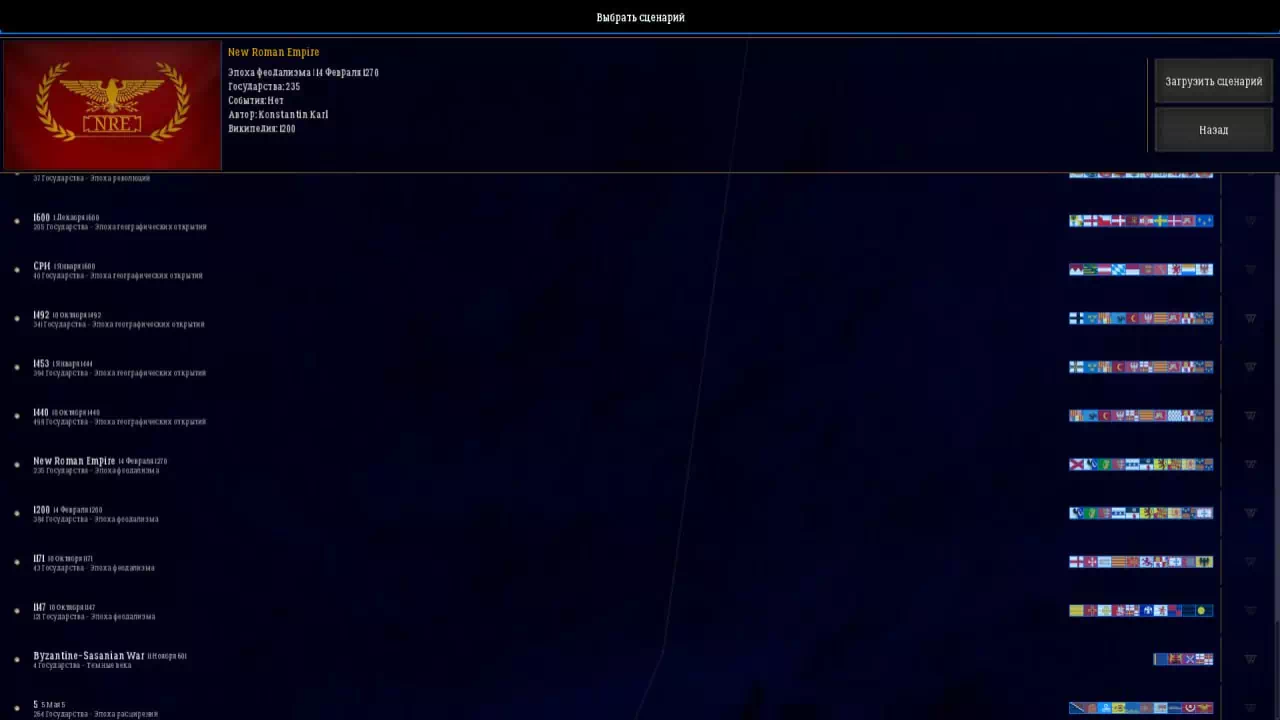 - Были добавлено начальные ивенты в сценарий New Roman Empire