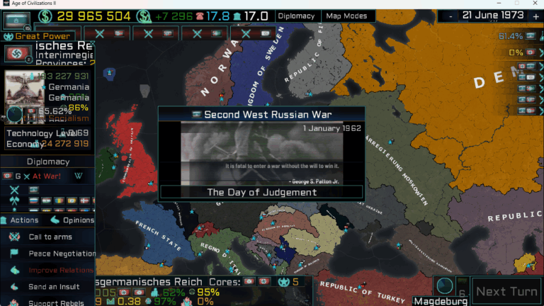 - Ivan: either turn Germany into a puppet state under Paper governance, or fragment Germany into multiple smaller states — some pro-Paper, some independent — depending on local identities and ideology.