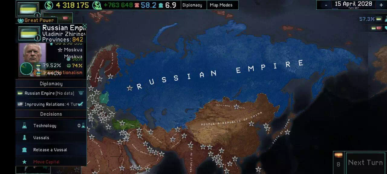 - За основу взят The New Order, который содержит карту, с достаточно большим количеством провинций, и приятную стилистику.