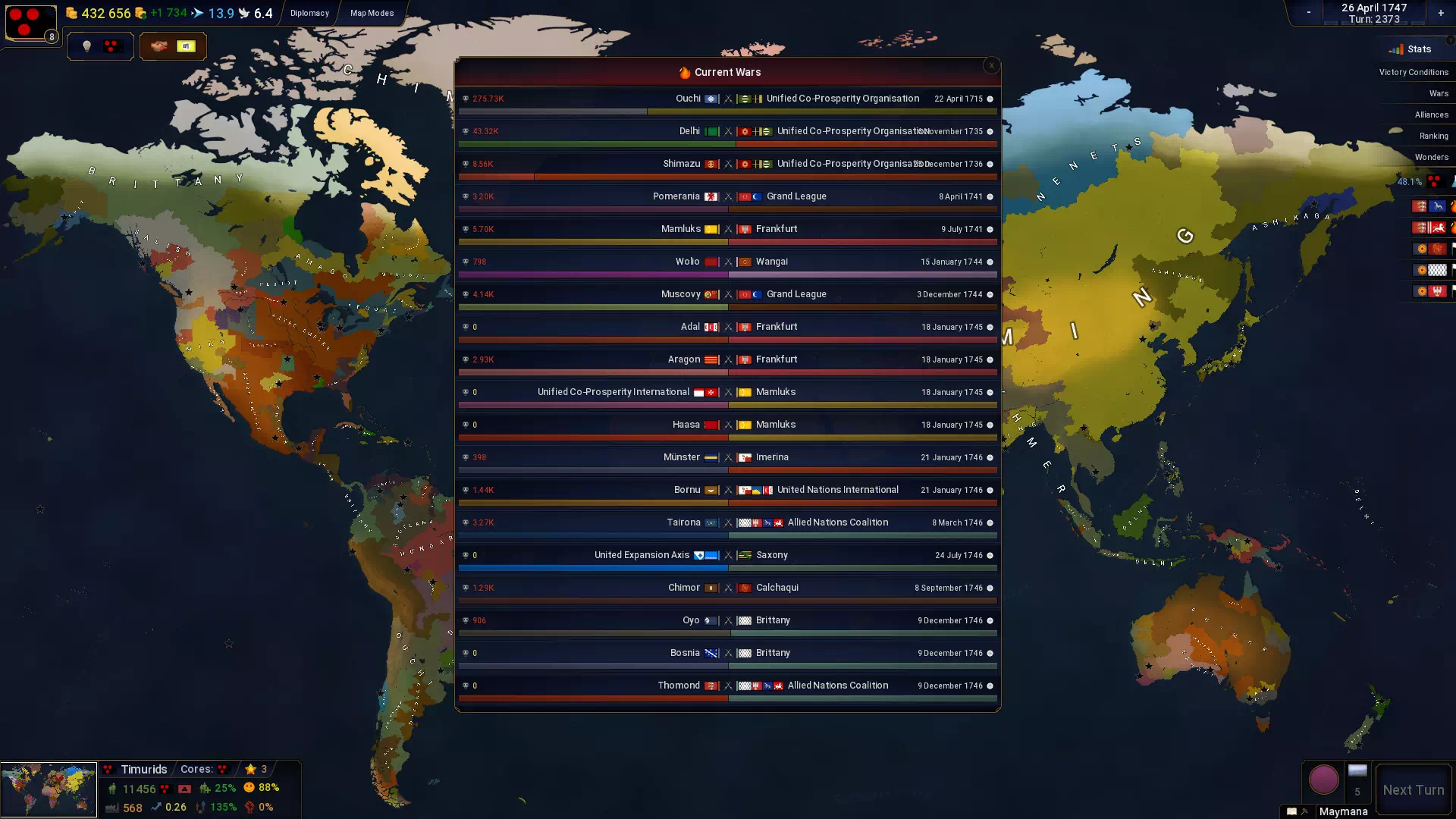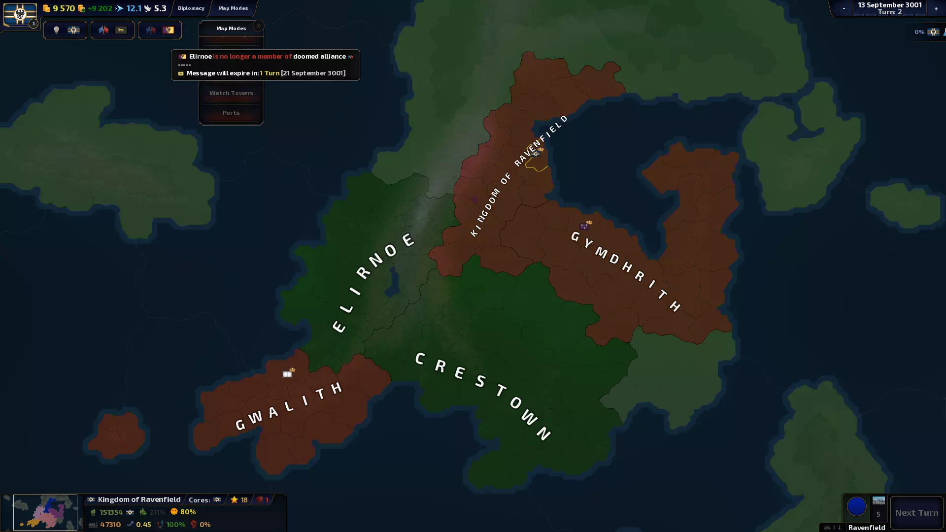 4) Также добавлен код, который очищает альянсы, в которых нет существующих участников, что также немного повышает производительность. - Удалена функция, которая позволяет цивилизациям отправлять мирные договоры только один раз за войну, что означает вечные войны, если первый договор будет отклонен.
