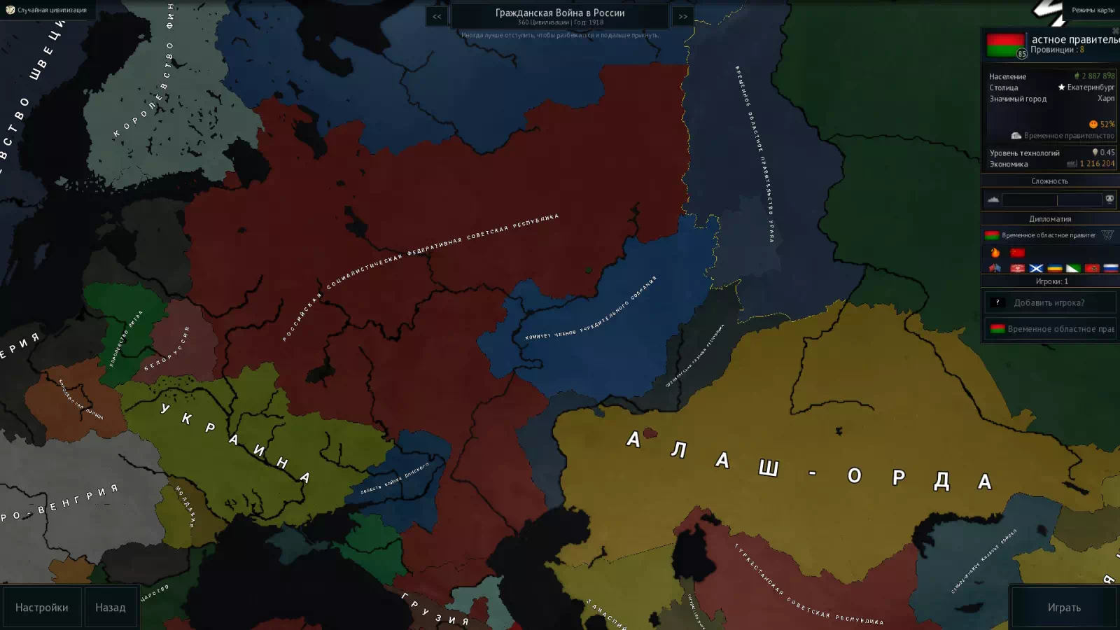 Я не имею ни единого понятия, о том, сколько там цивилизаций, потому что как только я захожу в список цивок, сразу вылетает. Нет цивок — нет редактора или вассалов. Грустно.