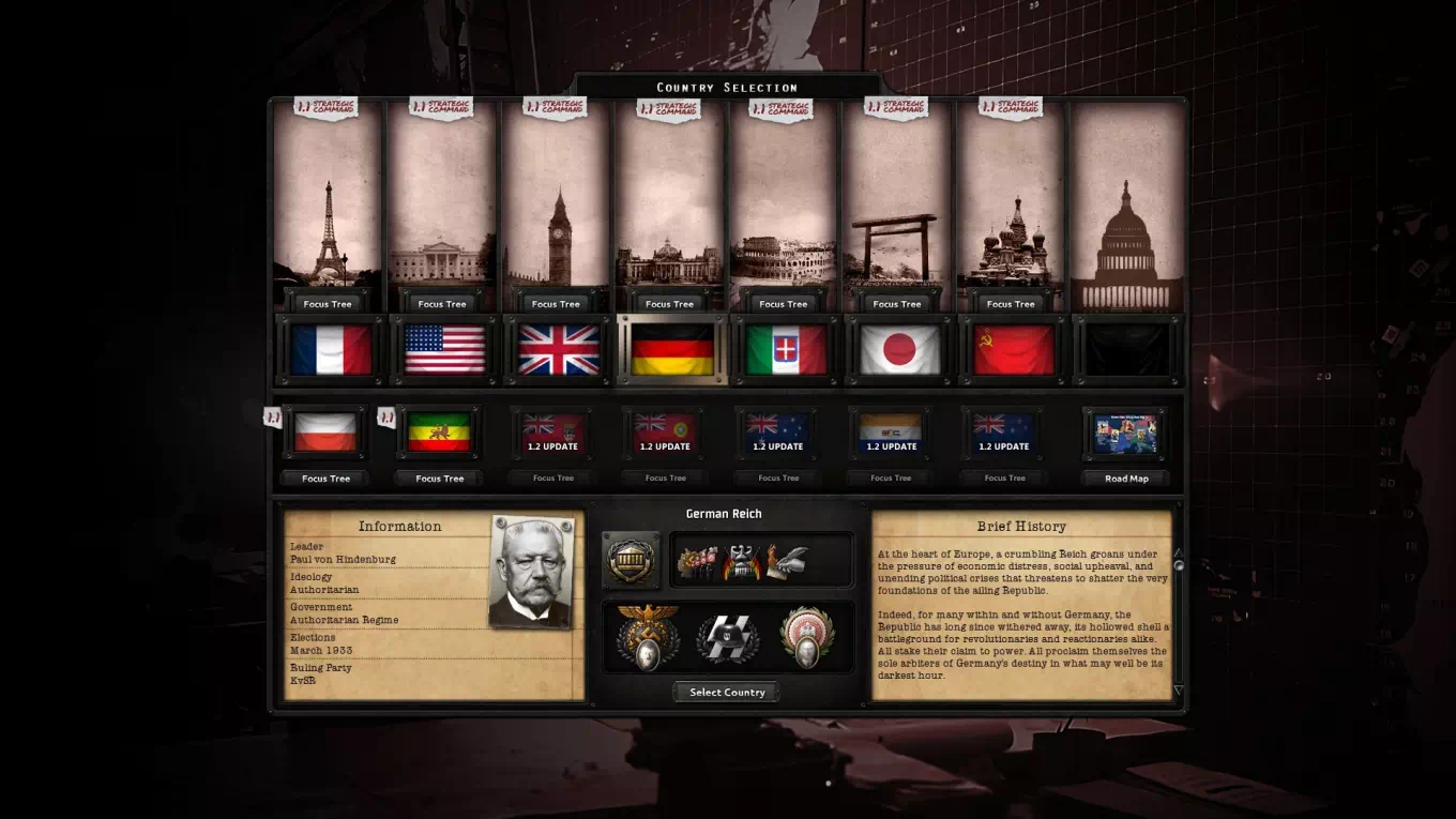 — Кнопки «Дерево фокусов» на экране выбора страны теперь более интерактивны.