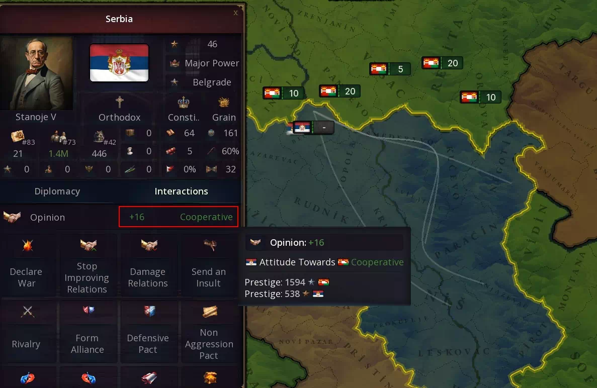 - стоимость объявления войны 1 (в оригинальной версии 10) —> 5 (потому что это было бы OP, потому что отношения больше не имеют значения при объявлении войны)