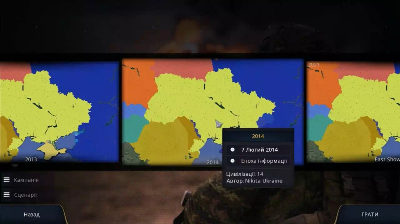 East Showdown посвящен текущему противостоянию Украины с Россией. Мод очень долго разрабатывался на AoH 2, но так и не вышел, а теперь был выпущен для игры Age of History 3.