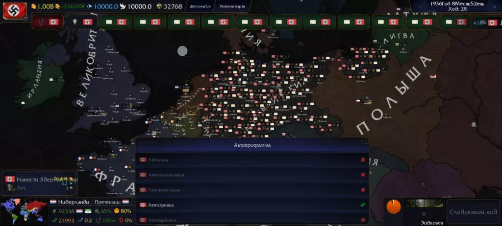 — ИИ может одновременно уйти в оборону на одном фронте и атаковать на другом. (Иногда он встаёт в оборону перед пустыми провинциями, будет исправлено).