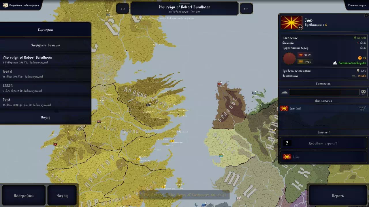 - Новая цивилизация — Драконий Камень (Станнис Баратеон)