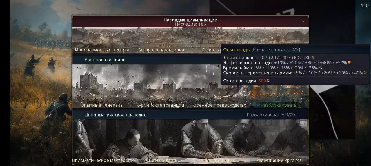 - Снижены затраты на содержание армии, превышающей лимит, что облегчает управление финансами.