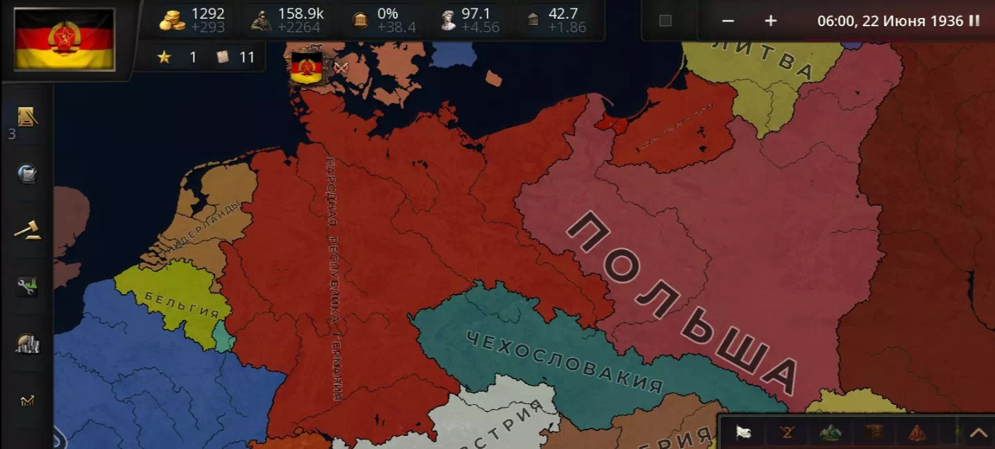 Мод разрабатывается в стиле псевдо-hoi4, целью является сделать игру похожей на хойку.
