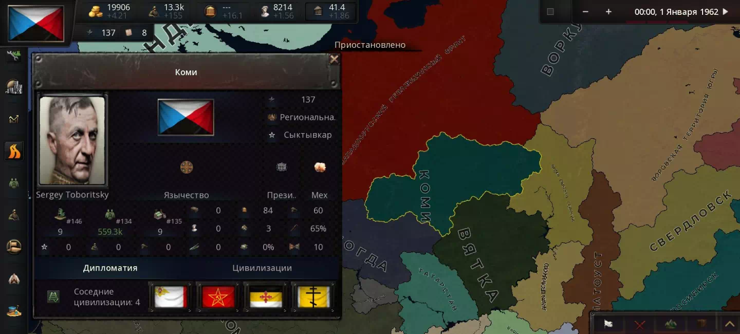 - Новый сценарий — ТНО 1962, с русифицированными событиями, правителями и формируемыми странами