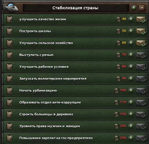 Теперь вам придётся бороться за каждую единицу стабильности, в чём вам поможет новая ветка решений которая добавляет вам стабильность за полит власть!