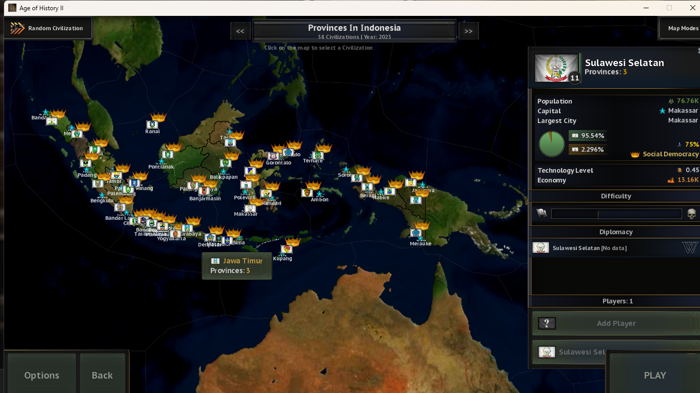 Note : Age of History 3 already offers six civilizations (Aceh, Riau, Jambi, Banten, Bali, and Papua). So, I’m not adding new civilizations to those six provinces.