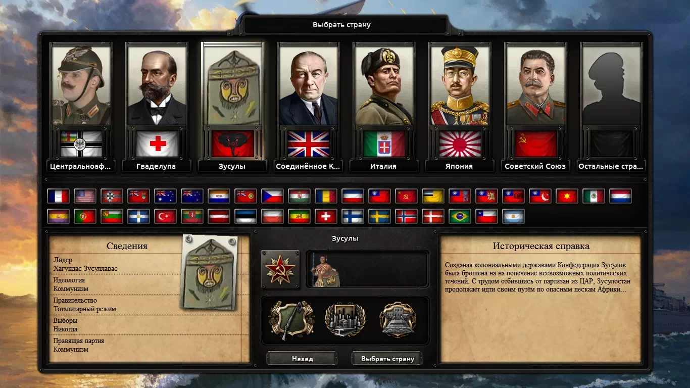 Непокорные зусулы милостью Антанты, владеющие северной Африкой, готовятся к неизбежной войне с Рейхсмахтом, всеми силами пытаясь противостоять Железному Капуту и модернизировать племенную страну перед угрозой стремительно развивающегося мира.
