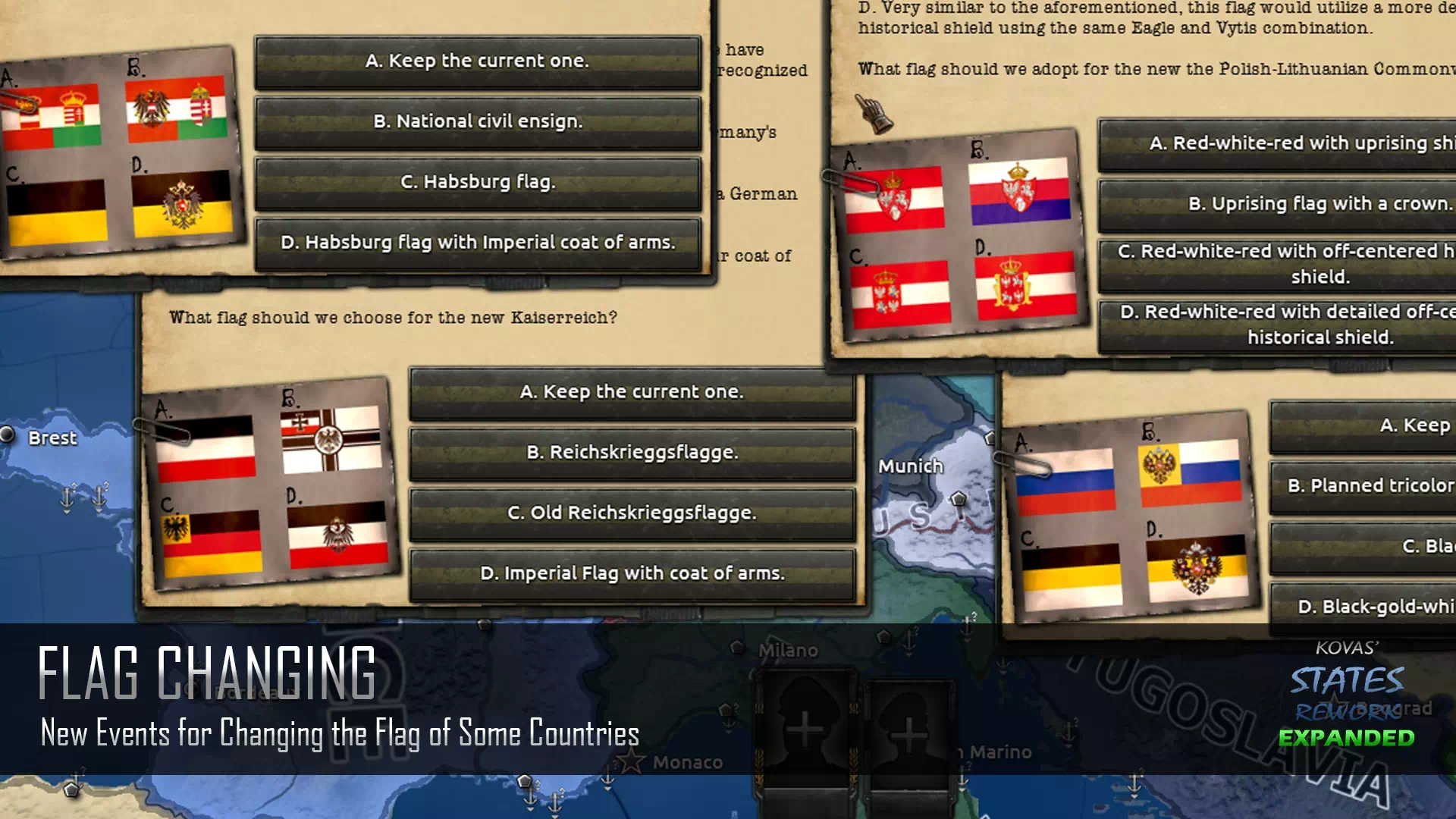 - Возможность смены флага для Австро-Венгрии, Германской империи, Российской империи и Речи Посполитой.