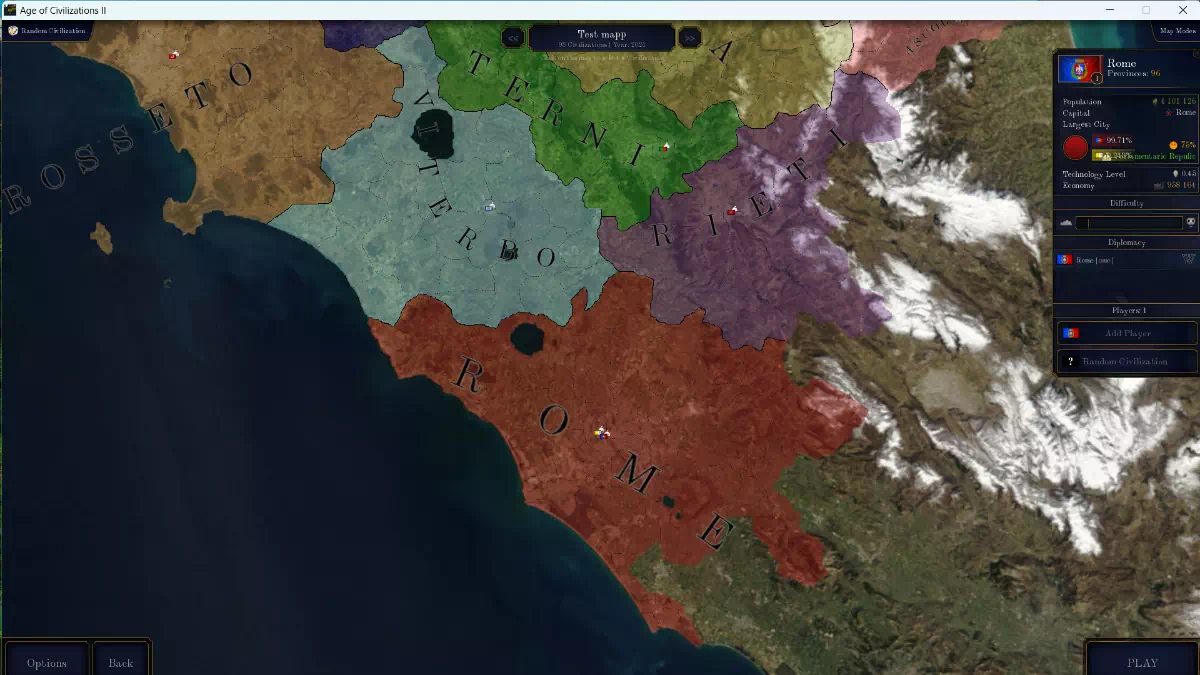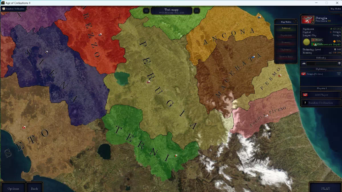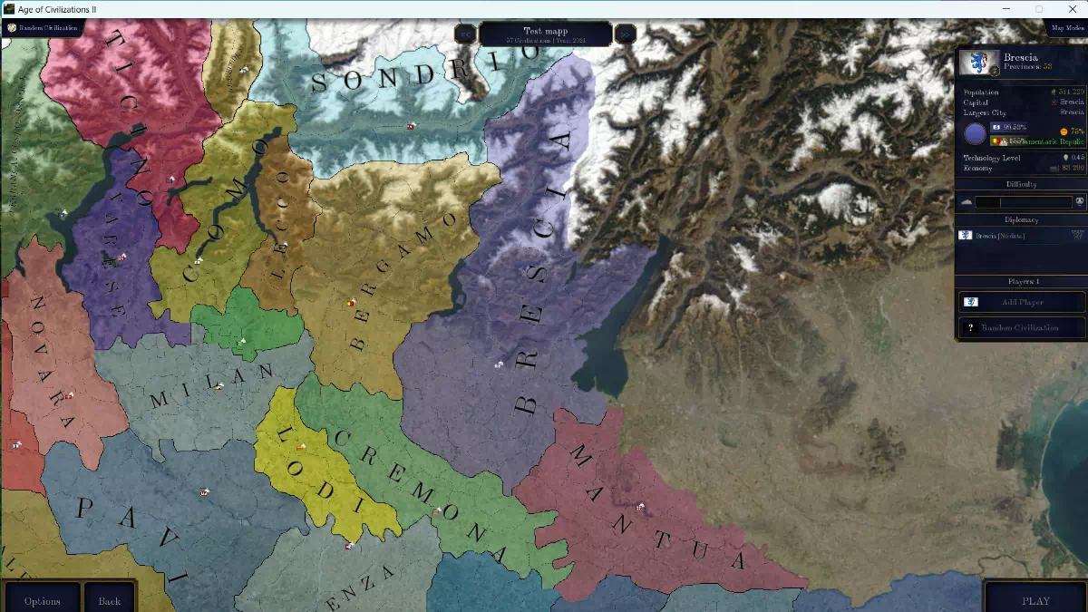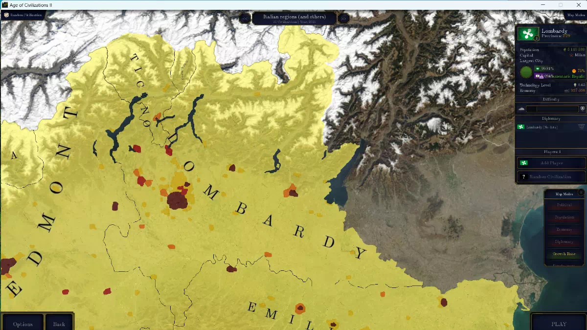 - «Городские провинции»: самые маленькие и самые важные, темпы роста которых будут составлять от 20% до 100% в зависимости от численности жителей города в реальной жизни (по этой причине будет значительное количество городов, которые будут состоять из более чем одной провинции, например, Милан будет иметь более 10 провинций).