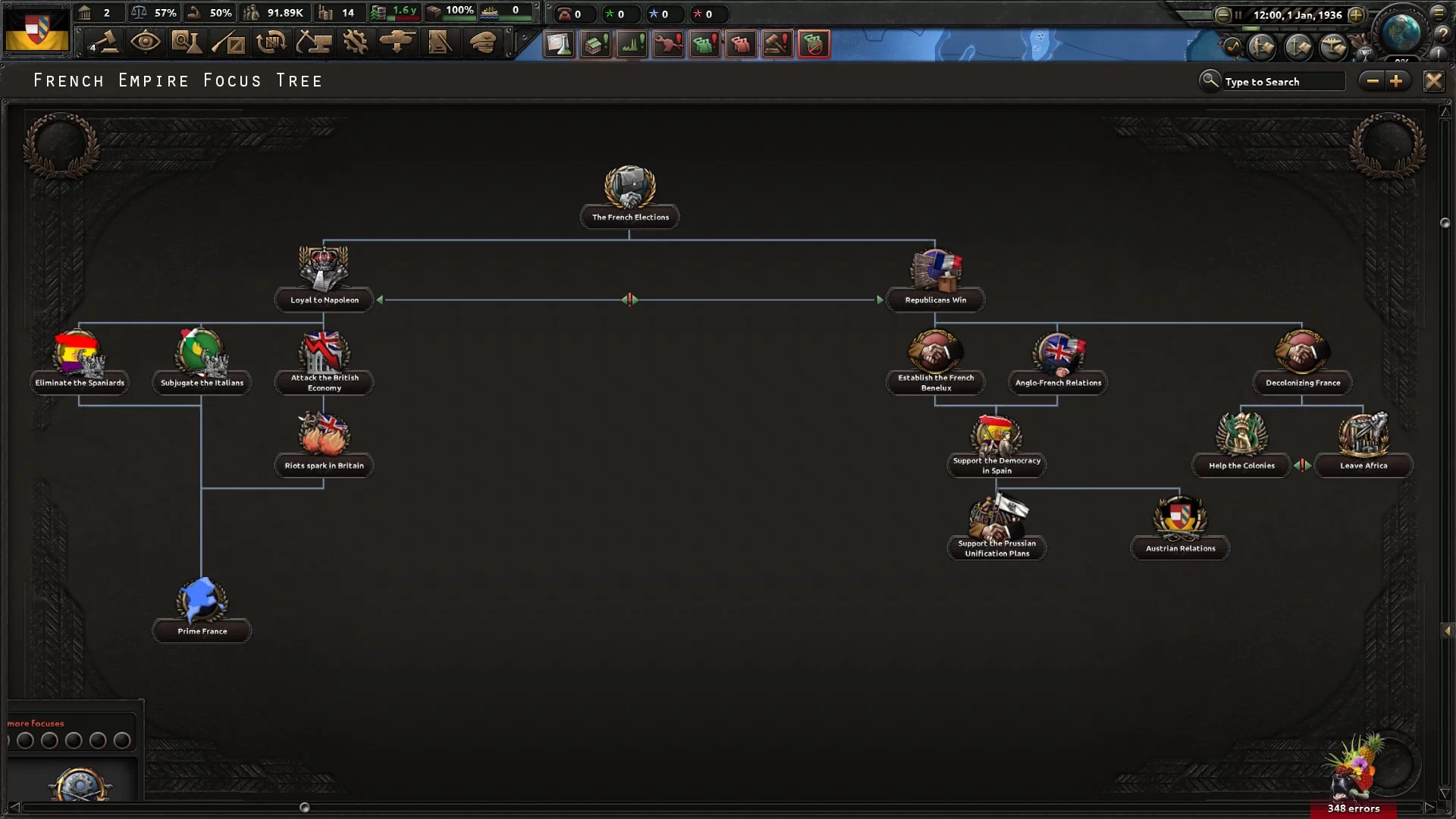 Вы начинаете игру в этом альтернативном мире в 1936 году. У каждой страны есть своя история(лор).