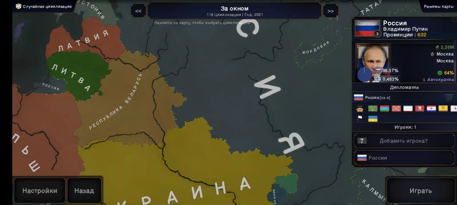 - 15 сценариев, с новыми правителями и идеологиями.
