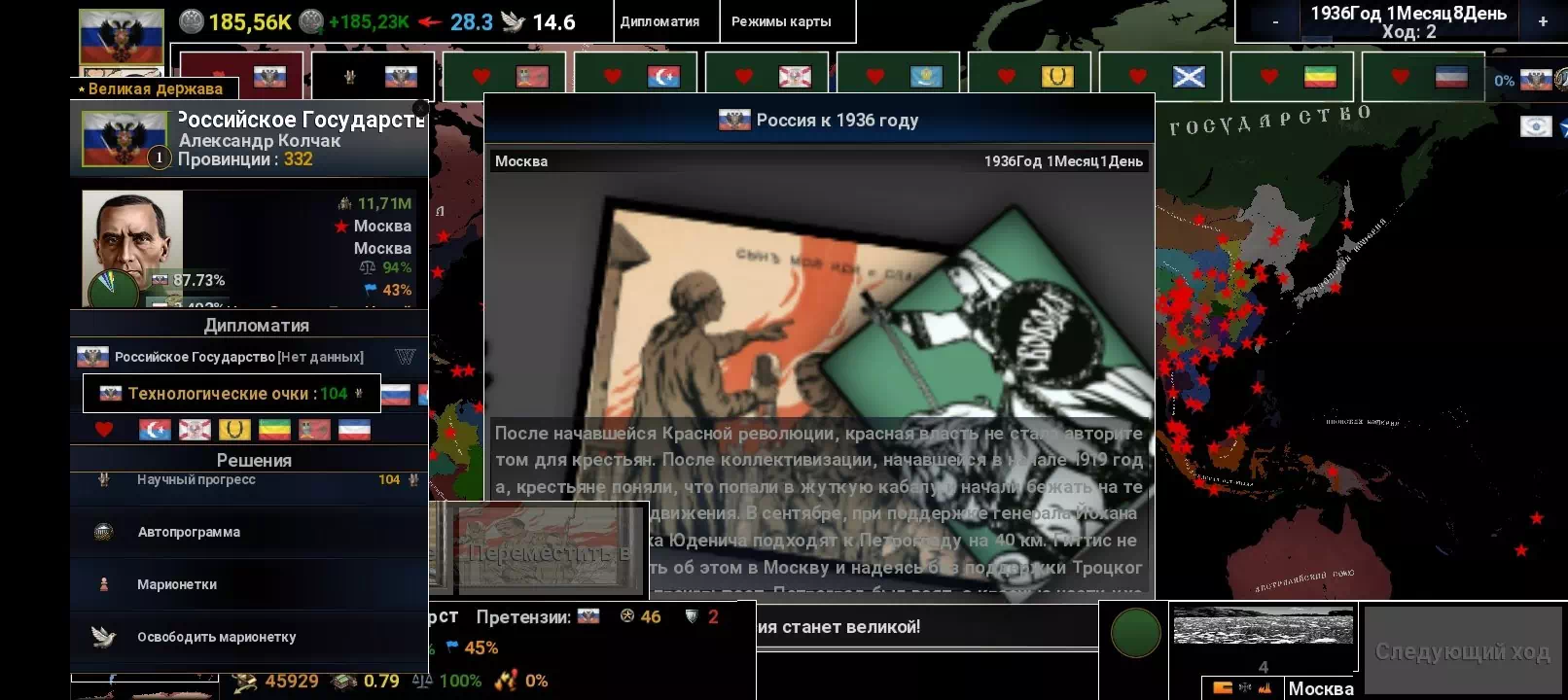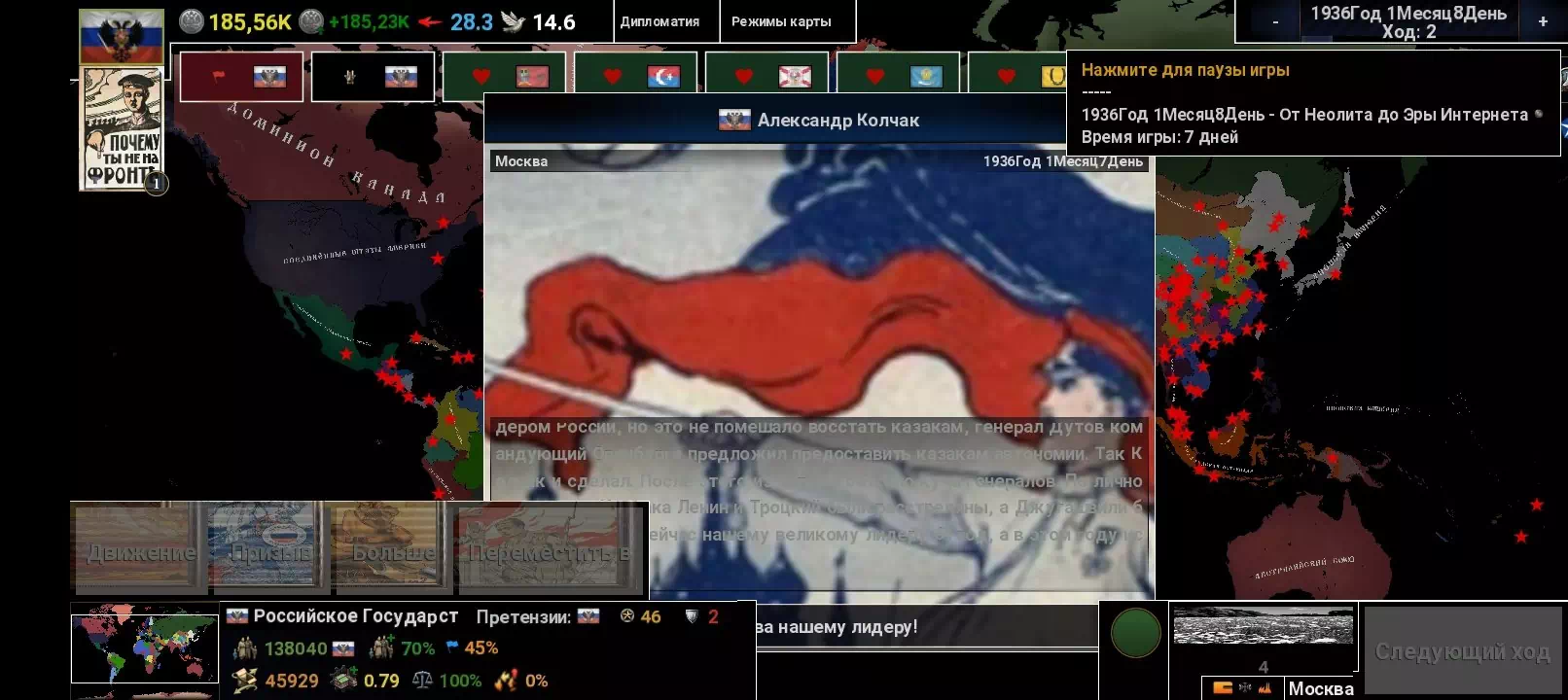 Сажусь за Россию, выдает событие, и я не могу сделать ход, говорит, что событие, и я не могу продолжить игру