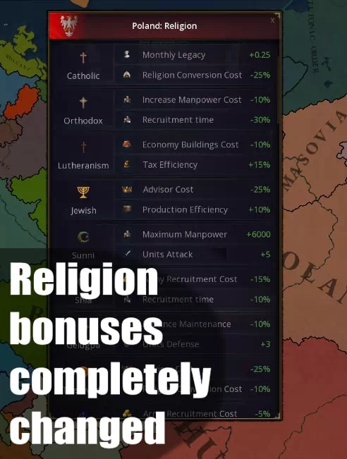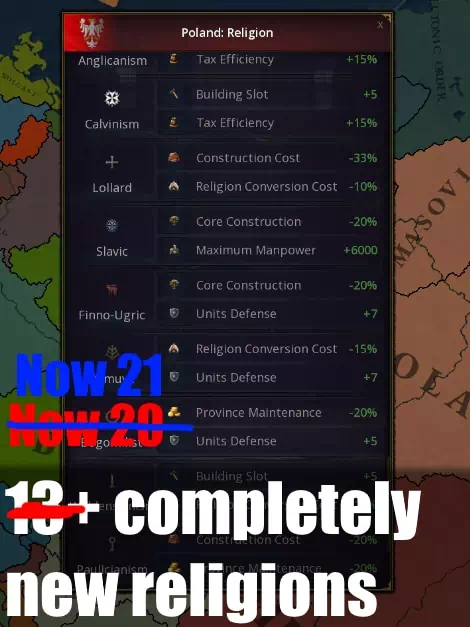 Мод Religions Expanded изменяет в Age of History 3 бонулы всех религий, увеличивая их значимость, а также добавляет более 20 новых.