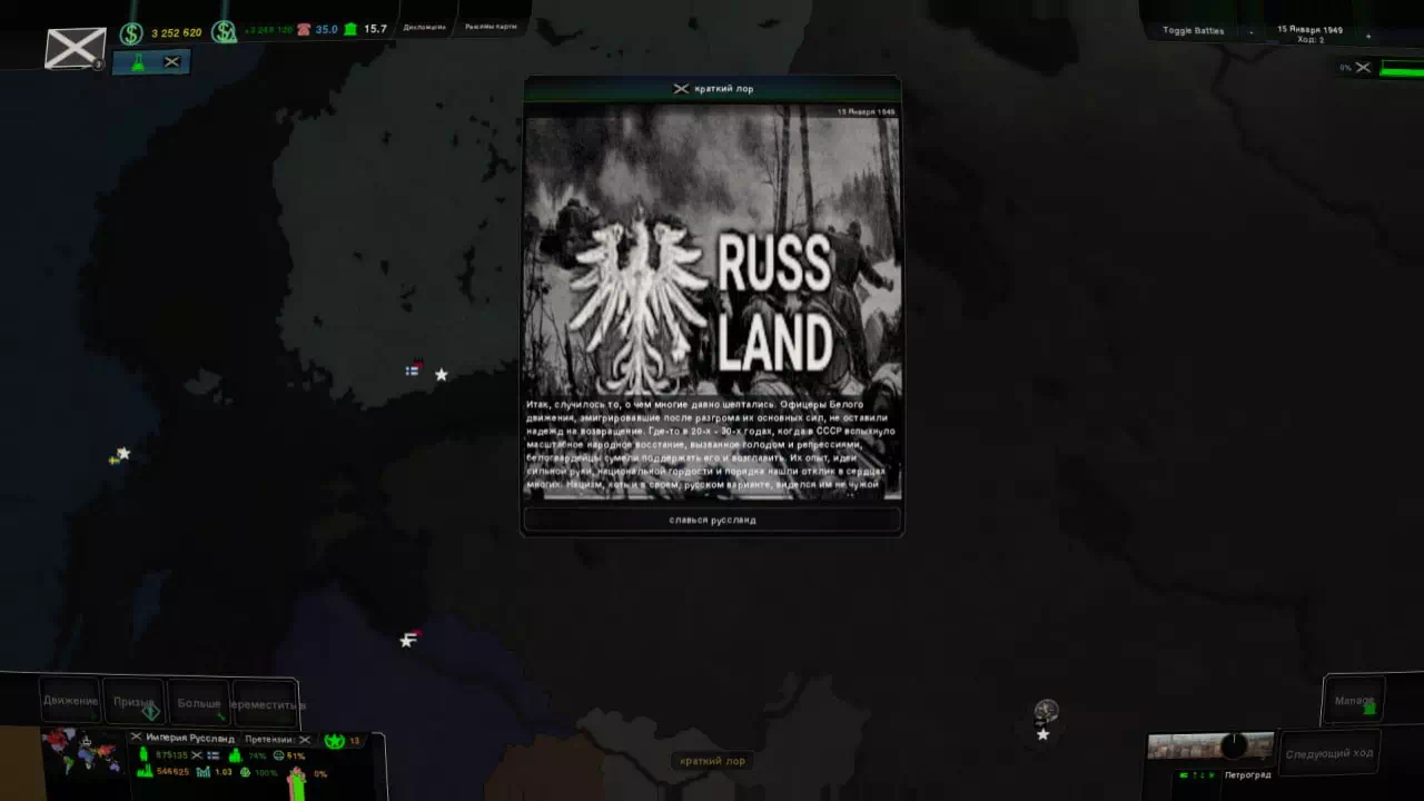 RussLand — это новый разрабатываемый проект на Age of History 2. Информации о нем мало, но разработчик слил билд мода.