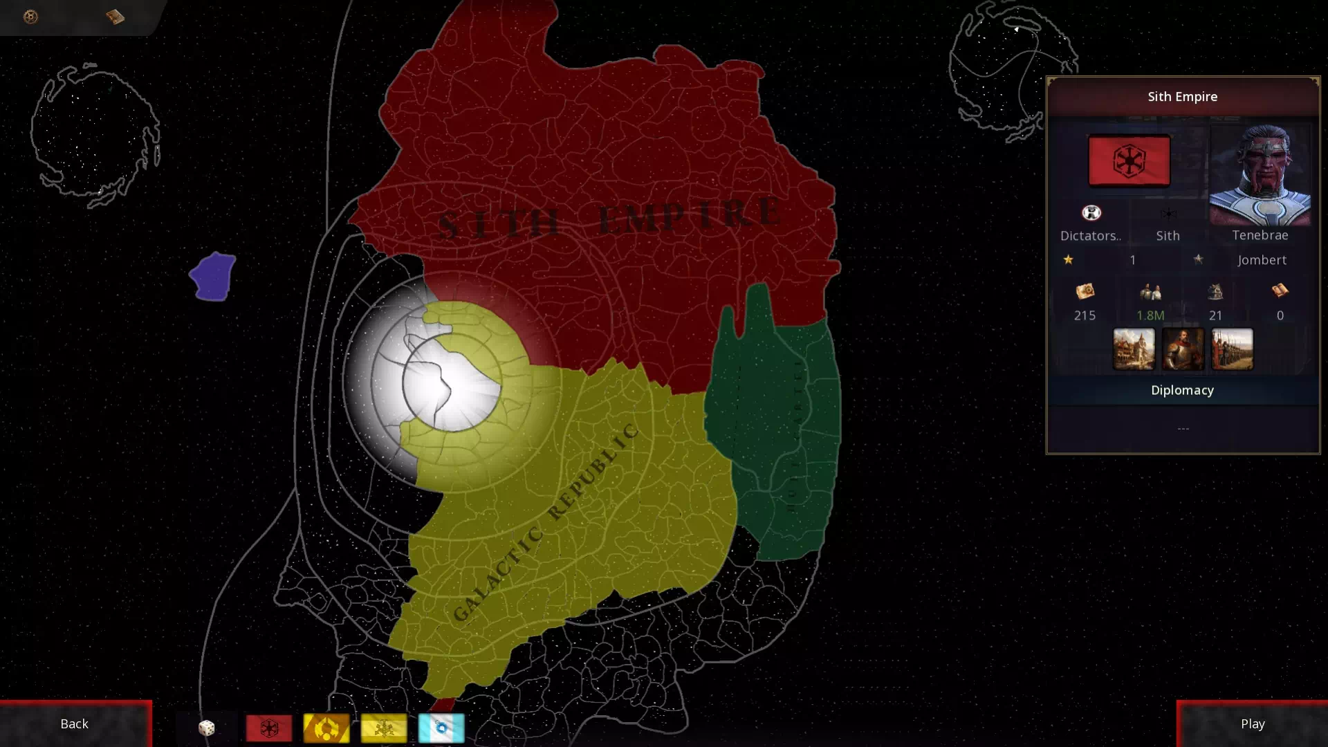 — Добавлены новые фракции: Империя ситхов, Империя скверны, Сепаратистский альянс, Галактическая республика, Торговая федерация, Галактический альянс, Техносоюз, Межгалактический банковский клан.