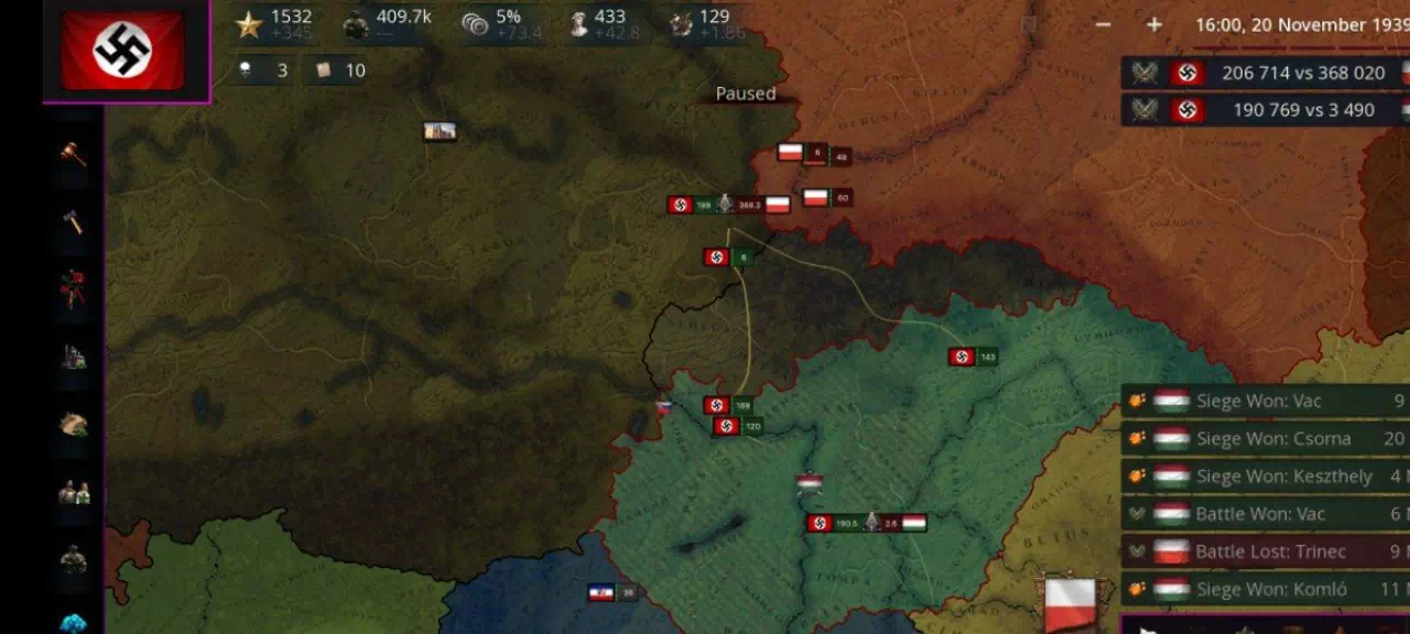 Ладно, даже если откинуть всё это и запуститься. Первый час, или даже несколько часов, всё идёт нормально. Не сказать что прям комфортно играть, однако вполне возможно. Конечно возможно пролагивание когда отдаляю карту, но пожалуй модов, где этого нет и не существует ( по крайней мере масштабных ). Однако как только проходит несколько часов, сразу начинаются бесконечные баги лаги и вылеты. Конечно во многом проблемы появляются из-за движка игры. Однако когда автосохранение напрочь перестают работать, и ломаются, или когда вообще вход времени останавливается и как-то его начать не представляется возможным. Конечно на самом деле у меня с помощью костылей и долгих махинаций получалось его восстановить, но только на минут 10-20. А иногда и меньше. Хотя вообще проблемы есть ещё и с точки зрения геймплея. В принципе я не против больших цифр. Ну во-первых цифры порой слишком большие. В каком-нибудь 2077 уже у всех бесконечно экономики и населения. Чем дальше тем сложнее сражаться воевать и в принципе развиваться. И это ещё ладно. Просто захватить территорию хитростью и тупо задавишь числом. Но когда цифры становятся слишком большими, ещё из-за основных ошибок в коде игры появляются огромные проблемы. Ну например в минус уходит доход и баланс. И всё. У тебя больше нету денег ни на что. Никак исправить это не получится. Да и в принципе с населением что-то похожее. Короче в принципе большая часть контента мне нравится, но опять же, н##истская символика, дисбаланс и постоянные баги не дадут долго поиграть в любимую партию.
