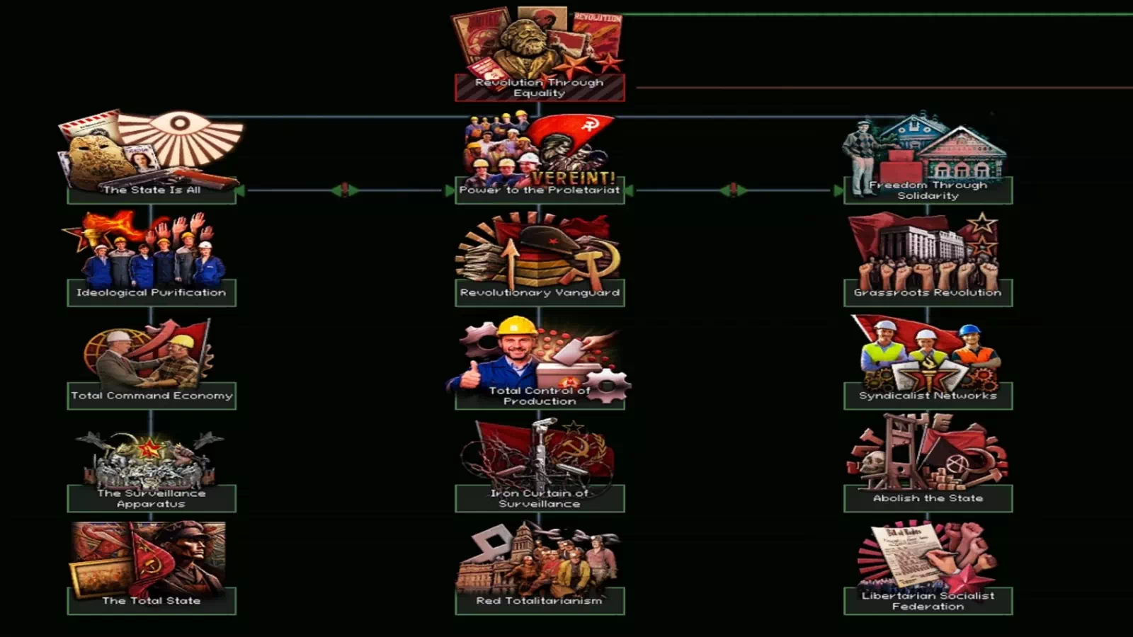 — Тоталитарным социалистам, авторитарным социалистам и либертарианским социалистам были предоставлены древа фокусов, позволяющие им сменить партию.