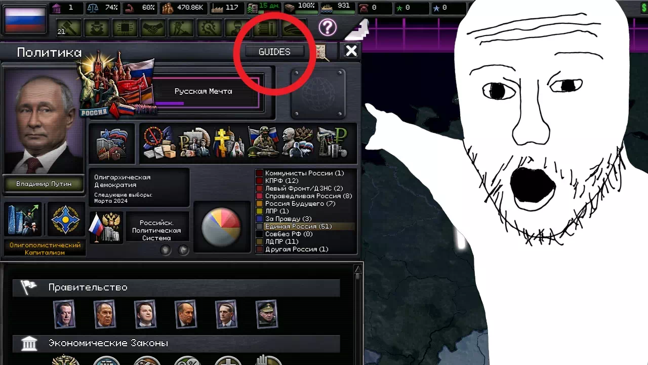 Guide Menu — это сабмод для The Fire Rises, добавляющий специальное руководство, которое можно увидеть в политическом меню страны (Q).