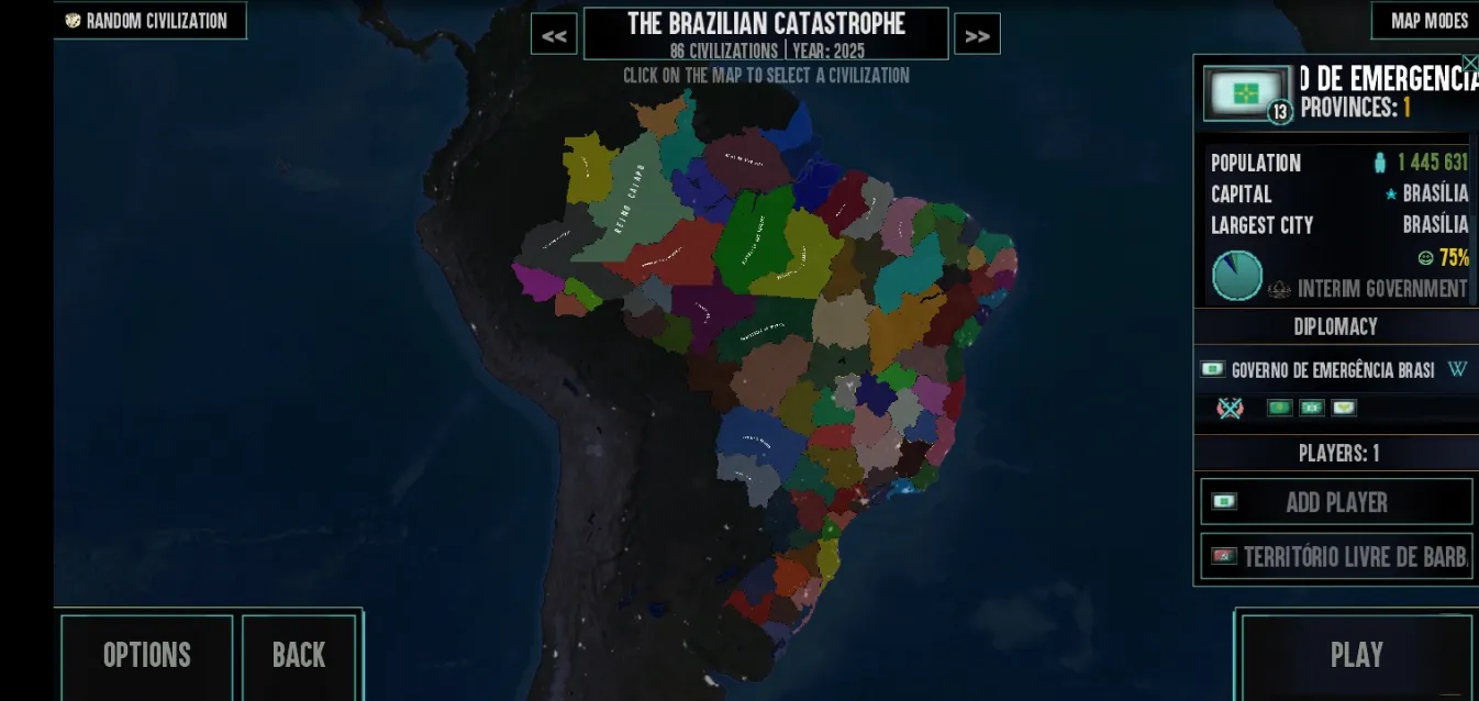 — The Brazilian Catastrophe: сценарий с 86 военачальниками (включая 1 военачальника, которого можно освободить в качестве вассала в Сан-Паулу). У некоторых военачальников есть возможность создания цивилизаций.