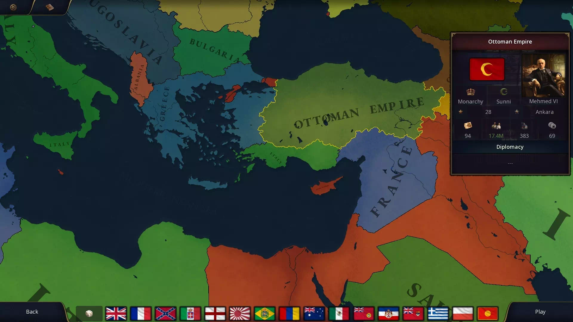 В игре вы можете играть за любую нацию; например, за одного из военачальников Германии, участвовать в гражданской войне в России или взять на себя управление Британской империей, которая находится на грани хаоса, и многое другое.
