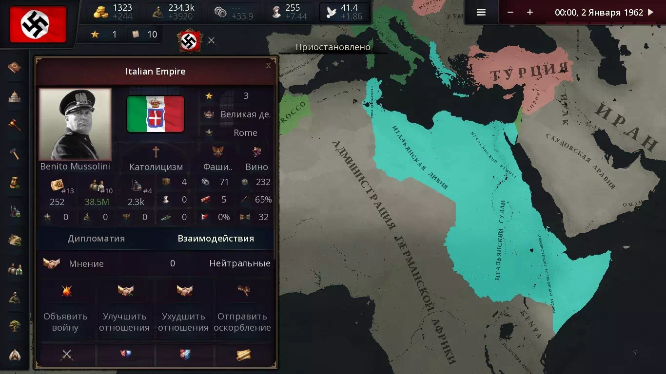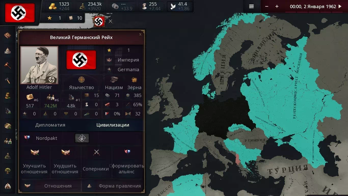К 1960-м годам Германия и ее союзники по Северному пакту продолжают экспансию, поддерживая тоталитарные режимы и санкционированные Рейхом государства, такие как Московия и Кавказ. Холодная война ведется между Рейхом, США, Японией и возрожденной Россией, что приводит к глобальной борьбе за ресурсы, территории и сферы влияния.