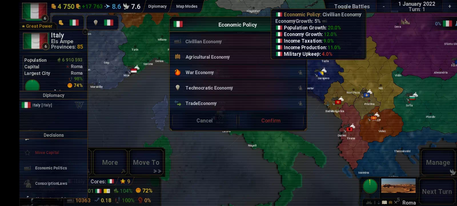 теперь ИИ может отправлять ультиматумы своим вассалам, отправлять предложения в Союз, дарить, тратить больше во время войны, строить больше в своих столицах, добавлять новые типы управления для ИИ.
