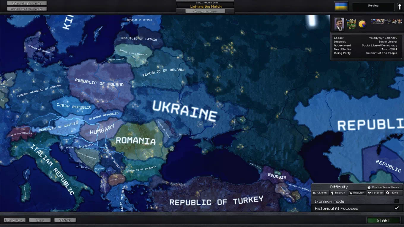 Погрузитесь в современную историю Украины и возьмите под контроль судьбу страны в этом субмоде для HoI 4: The Fire Rises. В Ukraine Expansion, начиная с января 2020 года, вам предстоит управлять государством Украина в один из самых сложных периодов её истории.