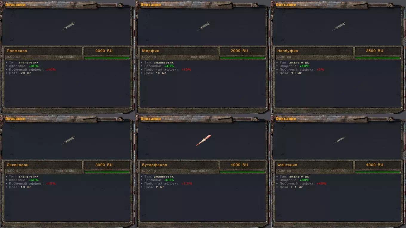 — Более реалистичные характеристики промедола (побочные эффекты увеличены на 100%);