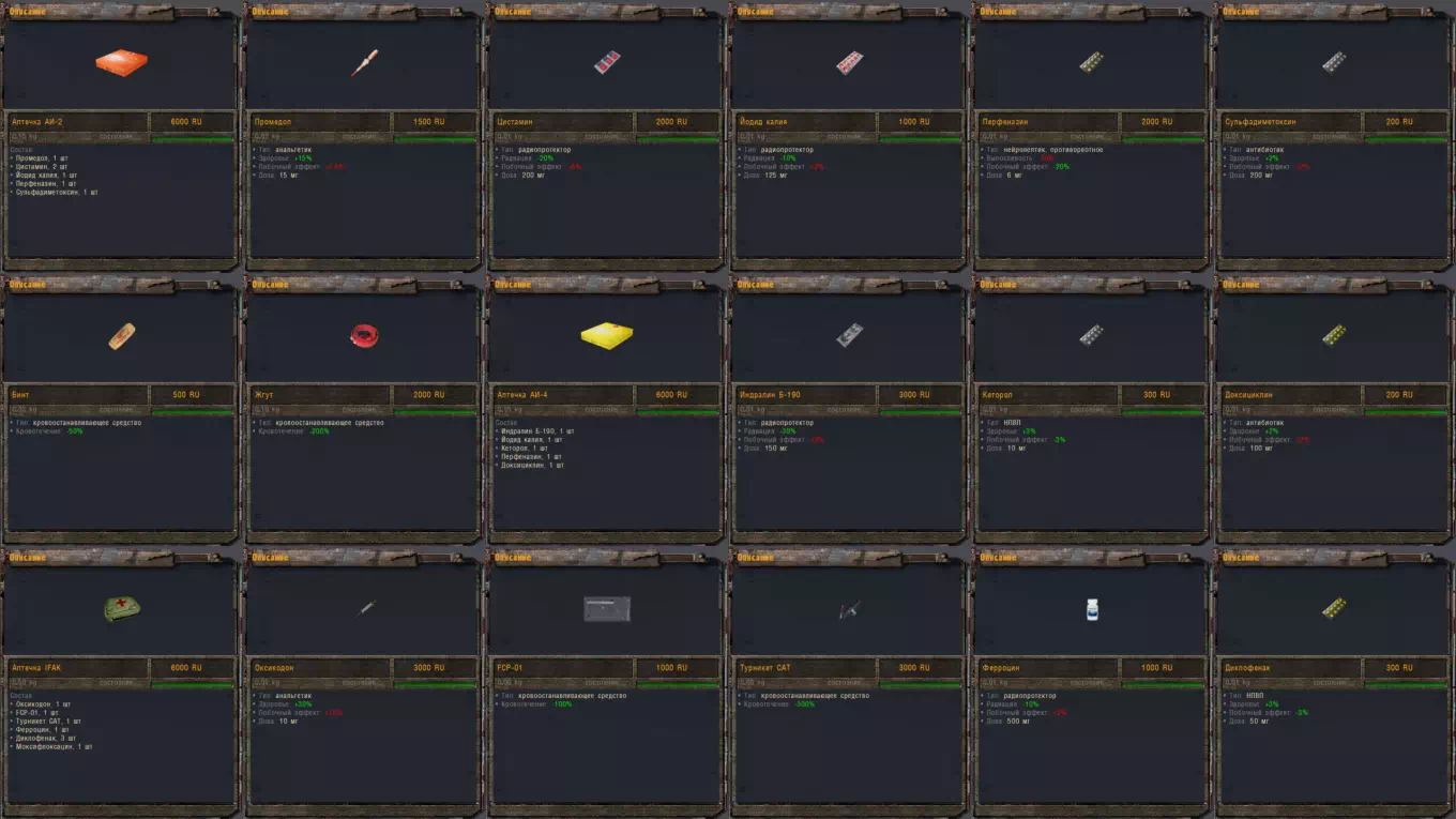 — Количество медикаментов увеличено до более 30 единиц (анальгетики, радиопротекторы, стимуляторы, кровоостанавливающие средства и другие);