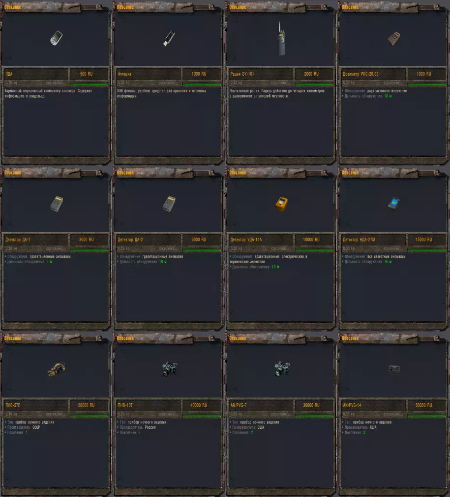 — Исправлена неверная цена продажи приборов ночного видения ПНВ-57Е, ПНВ-10Т, AN/PVS-7, AN/PVS-14 и AN/PVS-15 НПС и торговцам